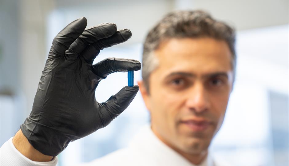 Photo caption: Saman Maleki, PhD, holding a ‘poop pill’ developed by Lawson Research Institute of St. Joseph’s Health Care London and tested in clinical trials at London Health Sciences Centre Research Institute and Centre de recherche du Centre hospitalier de l’Université de Montréal (CRCHUM).