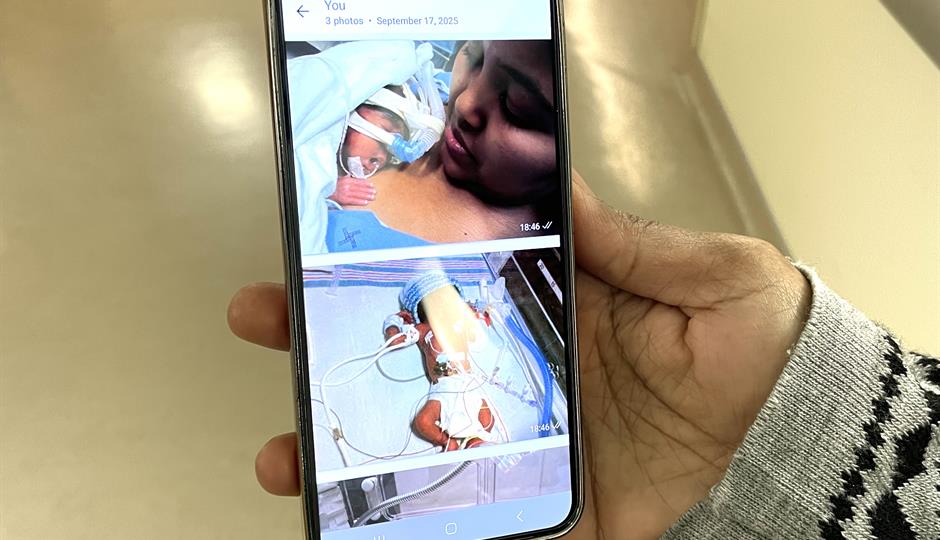 Sensing the new mother’s worry, Tufah Sharif reaches for her phone.