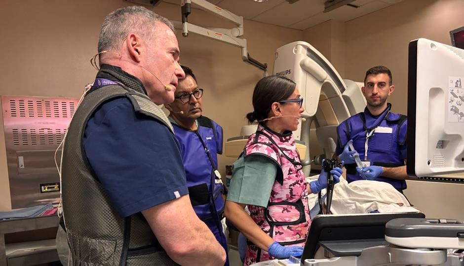 Photo caption: Drs. Gary May, Anand Sahai, Uzma Siddiqui and Martin Harb perform an endoscopy on Day Two of the Course.