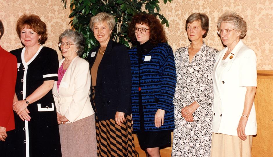 Photo caption: Susan (centre right) with the Association of Volunteers executive committee, 1993–1994.