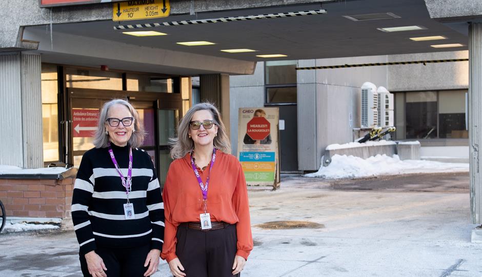 Photo caption: Dr. Allison Kennedy, Clinical Lead for Mental Health Crisis and Emergency Services at CHEO and Dr. Kathleen Pajer, Director of the Precision Child and Youth Mental Health (PCYMH) Collaboratory at the CHEO Research Institute, in front of CHEO's Emergency Department.