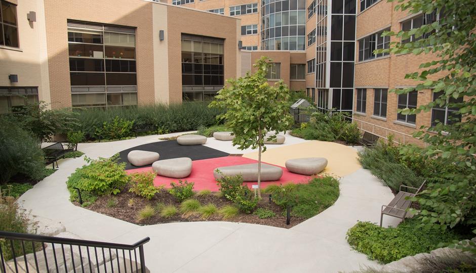“Often times the first feedback I get from patients is that they want to go outside; they want to smell the fresh air. Taking them down to the Healing Garden helps to reintroduce playful, childhood experiences,” says Yawney. “It allows for the creation of moments where they can smile and laugh in a different space, and all of this helps with their ability to cope.”