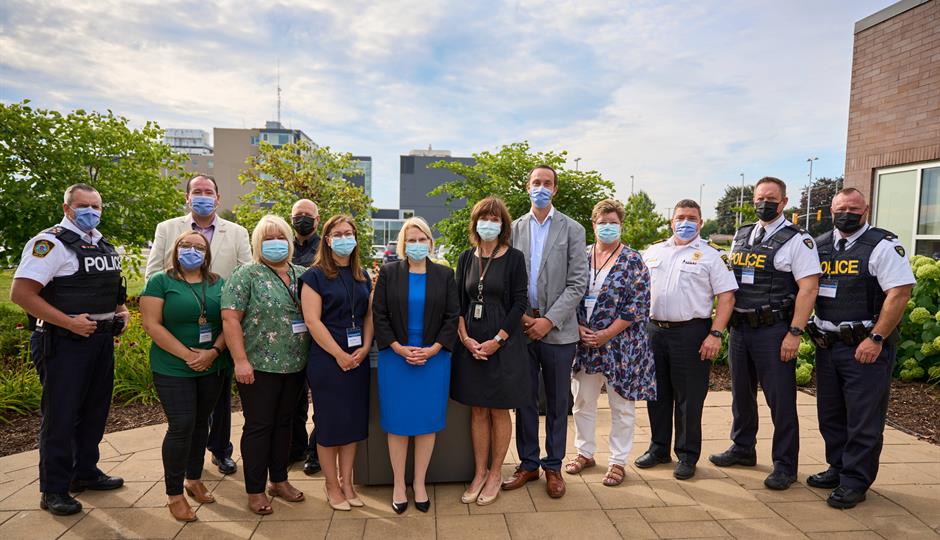 CEO Jeanette Despatie, is joined by Hon. Sylvia Jones, Deputy Premier and Minister of Health, and Member of Provincial Parliament Nolan Quinn at the Safe Bed announcement event on Aug 17, 2022.